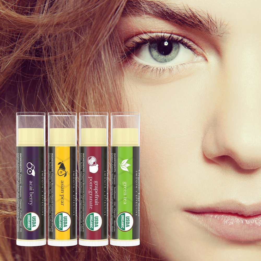 Organic Lip Balm Pack Peppermint Moisturizing Natural Beeswax