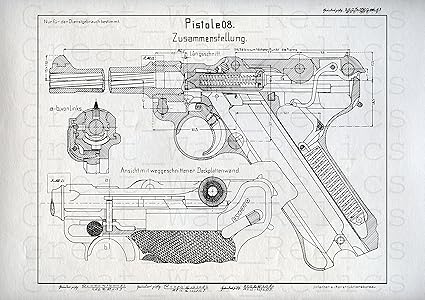 Amazon Com P08 Luger Pistol 13 X 16 9 Black Wood Framed White